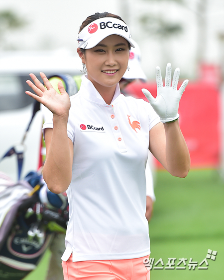 [엑스포츠뉴스=인천, 권혁재 기자] 20일 오전 인천 청라지구 베어즈베스트 청라골프클럽(파72·6476야드)에서 열린 기아자동차 '제28회 한국여자오픈'(총상금 7억원, 우승상금 2억원) 2라운드 경기, 김하늘(26, 비씨카드)이 1번 홀 티샷을 한 후 카메라를 향해 손을 흔들고 있다.
