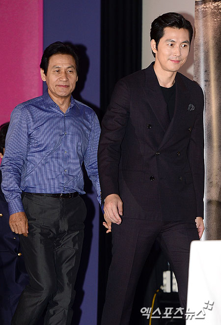 [엑스포츠뉴스=권태완 기자] 24일 오후 서울 을지로 동대문 메가박스에서 열린 영화 '신의 한수' 언론시사회에 안성기(왼쪽)와 정우성이 입장하고 있다.