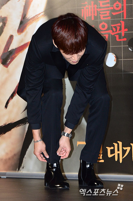 [엑스포츠뉴스=권태완 기자] 24일 오후 서울 을지로 동대문 메가박스에서 열린 영화 '신의 한수' 언론시사회에 최진혁이 입장하던 중 옷매무새를 정리하고 있다.