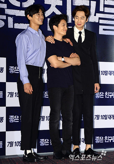 [엑스포츠뉴스=권태완 기자] 25일 오후 서울 왕십리CGV에서 열린 영화 '좋은 친구들' 언론시사회에 주지훈, 지성, 이광수(왼쪽부터)가 함께 포즈를 취했다.