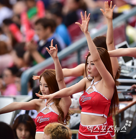 [엑스포츠뉴스=권혁재 기자] 26일 오후 송파구 잠실야구장에서 열린 '2014 한국야쿠르트 세븐 프로야구' NC 다이노스와 LG 트윈스의 경기, LG 치어리더들이 열띤 응원전을 펼치고 있다.