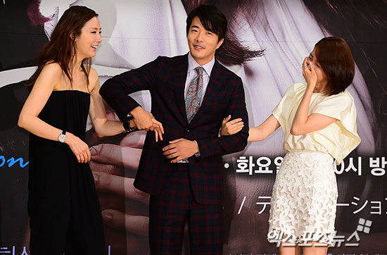 [엑스포츠뉴스=권태완 기자] 10일 오후 서울 목동 SBS에서 열린 SBS 월화드라마 '유혹' 제작발표회에 최지우, 권상우, 박하선(왼쪽부터)이 함께 포즈를 취했다.
