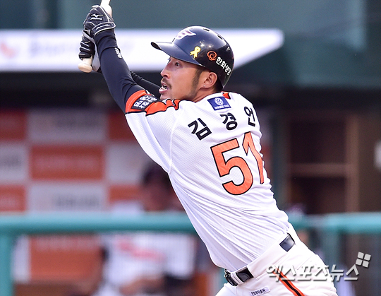 김경언은 15일 문학구장에서 열린 2014 한국야쿠르트 세븐프로야구 SK 와이번스와의 원정경기에 3번 좌익수로 선발 출장했다.