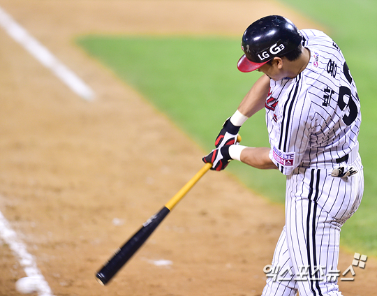 [엑스포츠뉴스=권혁재 기자] 28일 오후 서울 송파구 잠실야구장에서 열린 '2014 한국야쿠르트 세븐 프로야구' 롯데 자이언츠와 LG 트윈스의 경기, LG가 0-3으로 뒤진 7회말 2아웃 2, 3루 LG 박용택이 2타점 적시타를 날리고 있다.