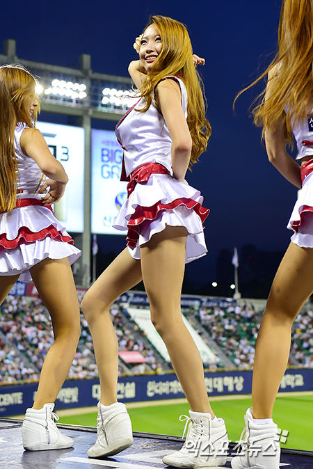 [엑스포츠뉴스=김한준 기자] 27일 오후 서울 송파구 잠실야구장에서 열린 '2014 한국야쿠르트 세븐 프로야구' LG 트윈스와 두산 베어스의 경기, LG 치어리더 김민지가 열띤 응원을 펼치고 있다.