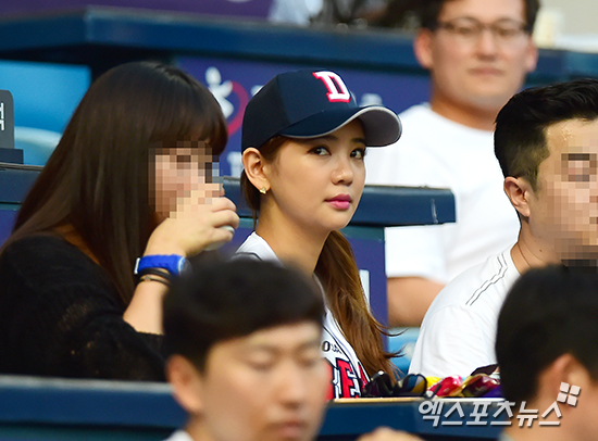 [엑스포츠뉴스=김한준 기자] 29일 오후 서울 송파구 잠실야구장에서 열린 '2014 한국야쿠르트 세븐 프로야구' 삼성 라이온즈와 두산 베어스의 경기, 시구를 마친 배우 이태임이 관중석에서 경기를 지켜보고 있다.