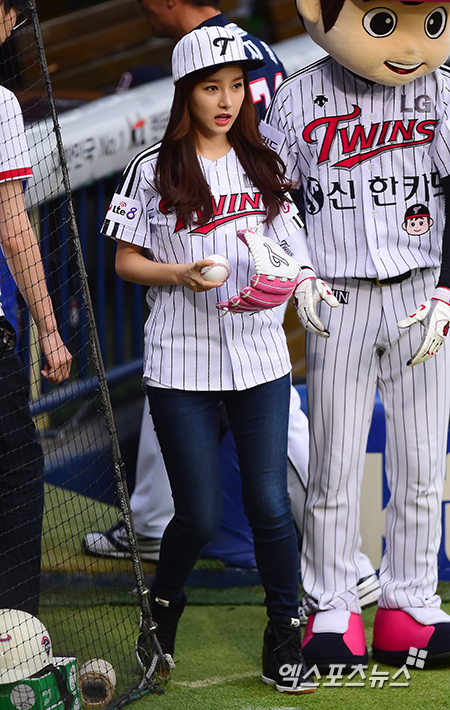 [엑스포츠뉴스=김한준 기자] 5일 오후 서울 송파구 잠실야구장에서 열린 '2014 한국야쿠르트 세븐 프로야구' 두산 베어스와 LG 트윈스의 경기, 경기 전 배우 김소은이 시구를 하기 위해 그라운드로 입장하고 있다.