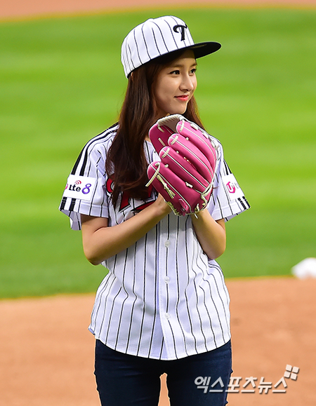 [엑스포츠뉴스=김한준 기자] 5일 오후 서울 송파구 잠실야구장에서 열린 '2014 한국야쿠르트 세븐 프로야구' 두산 베어스와 LG 트윈스의 경기, 경기 전 배우 김소은이 시구를 하고 있다.