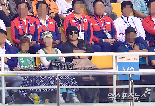[엑스포츠뉴스=안산, 권혁재 기자] 17일 오후 경기도 안산시 단원구 안산 와스타디움에서 열린 '2014 인천아시아경기대회' 남자축구 조별예선 A조 대한민국과 사우디아라비아의 경기, '으리'로 사랑받고 있는 배우 김보성이 가족들과 함께 관중석에 앉아 경기를 관람하고 있다.