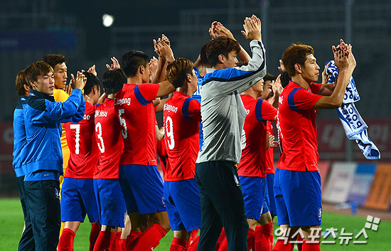 [엑스포츠뉴스=고양 권태완 기자] 25일 오후 경기도 고양시 고양체육관에서 열린 '제17회 인천아시아경기대회(THE 17th ASIAN GAMES INCHEON 2014)' 축구 남자 16강전 대한민국과 홍콩의 경기에 한국이 3:0으로 승리해 8강행을 결정지었다.
