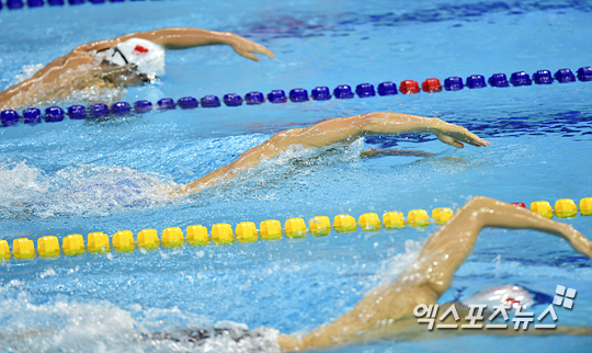 [엑스포츠뉴스=인천, 권혁재 기자] 26일 오후 인천 연수구 박태환수영장에서 열린 '제17회 인천아시아경기대회(17th Asian Games Incheon 2014)' 수영 남자 자유형 1,500M 결선 경기, 한국 박태환이 50M 랩타임 2위로 통과하고 있다.