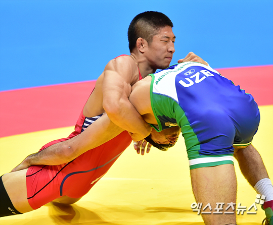 [엑스포츠뉴스=인천, 권혁재 기자] 27일 오후 인천광역시 중구 도원체육관에서 열린 '제17회 인천아시아경기대회(17th Asian Games Incheon 2014)' 레슬링 남자 자유형 70kg 결승전 한국 오만호와 우즈베키스탄(UZB) 압둘라크모노프의 경기에서 한국 오만호가 2-7로 패해 아쉬운 은메달에 그쳤다.