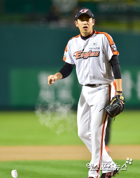 [엑스포츠뉴스=대전, 권혁재 기자] 13일 오후 대전광역시 중구 한밭야구장에서 열린 '2014 한국야쿠르트 세븐 프로야구' 삼성 라이온즈와 한화 이글스의 경기, 한화 선발투수 이태양이 손에 로진가루를 묻히고 있다.