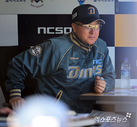 [엑스포츠뉴스=창원, 김한준 기자] 19일 오후 경남 창원 마산종합운동장에서 열린 '2014 한국 야쿠르트 세븐 프로야구' 준플레이오프 LG 트윈스와 NC 다이노스의 경기, 경기 전 NC 김경문 감독이 그라운드를 바라보고 있다.