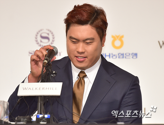 류현진 '마이크가 좀 높네요~'[포토]