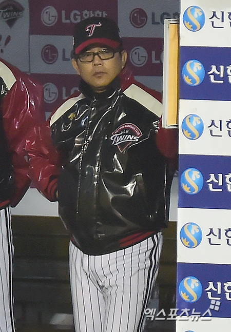 [엑스포츠뉴스=김한준 기자] 30일 오후 서울 송파구 잠실야구장에서 열린 '2014 한국 야쿠르트 세븐 프로야구' 플레이오프 3차전 넥센 히어로즈와 LG 트윈스의 경기, 3회초 LG 양상문 감독이 더그아웃에서 경기를 지켜보고 있다.