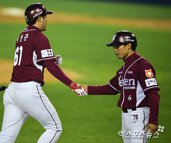 [PO3] 유한준 '멋지게 날렸어요'[포토]