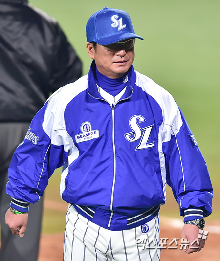 [엑스포츠뉴스=대구, 권혁재 기자] 5일 오후 대구광역시 북구 대구시민야구장에서 열린 '2014 한국야쿠르트 세븐 프로야구' 넥센 히어로즈와 삼성 라이온즈의 한국시리즈 2차전 경기, 삼성이 6-1로 앞선 6회말 무사 자신의 타구가 몸에 맞아 아웃 판정을 당한 삼성 이지영의 대한 판정에 류중일 감독이 항의를 한 후 덕아웃으로 들어고 있다.