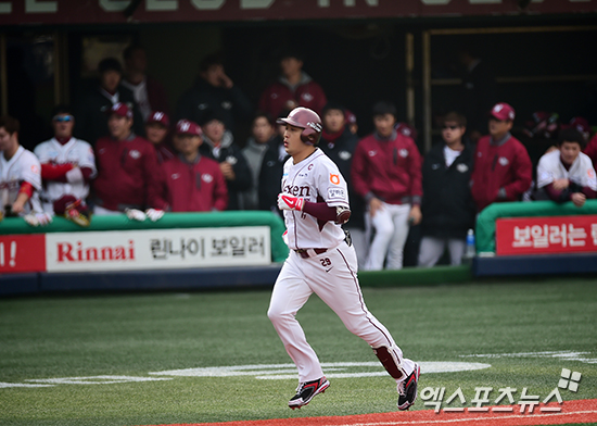 [엑스포츠뉴스=김한준 기자] 8일 오후 서울 목동야구장에서 열린 '2014 한국야쿠르트 세븐 프로야구' 삼성 라이온즈와 넥센 히어로즈의 한국시리즈 4차전 경기, 4회말 2사 1루 넥센 이택근이 투런 홈런을 날린 후 그라운드를 돌고 있다.