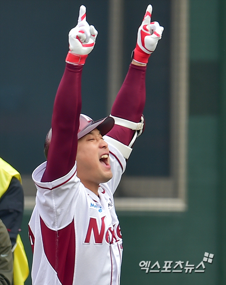 [엑스포츠뉴스=권혁재 기자] 8일 오후 서울 양천구 목동야구장에서 열린 '2014 한국야쿠르트 세븐 프로야구' 삼성 라이온즈와 넥센 히어로즈의 한국시리즈 4차전 경기, 넥센이 5-0으로 앞선 4회말 2아웃 1루 좌월 투런포를 날린 넥센 이택근이 홈을 밟은 후 환호하고 있다.
