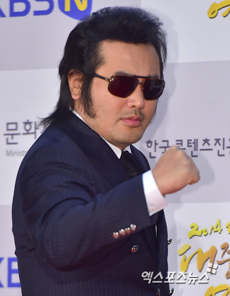 [엑스포츠뉴스=권혁재 기자] 17일 오후 서울 종로구 홍익대 대학로 아트센터에서 열린 '2014 대한민국 대중문화예술상'에 참석한 배우 김보성이 포토월에서 포즈를 취하고 있다.
