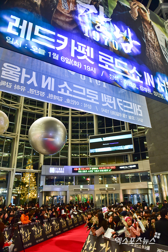 [엑스포츠뉴스=권혁재 기자] 6일 오후 서울 영등포구 영등포동 타임스퀘어에서 열린 영화 '강남 1970' 레드카펫 행사에서 수많은 팬들이 일찍 자리를 잡고 배우 이민호, 김래원, 정진영을 기다리고 있다.