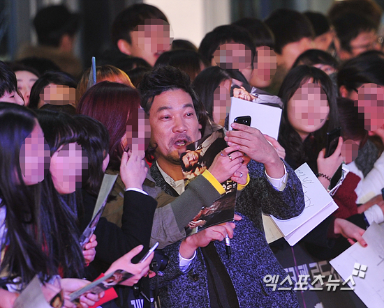 [엑스포츠뉴스=권혁재 기자] 6일 오후 서울 영등포구 영등포동 타임스퀘어에서 열린 영화 '강남 1970' 레드카펫 행사에서 배우 정진영이 팬들과 함께 셀카를 촬영하며 레드카펫을 밟고 있다.