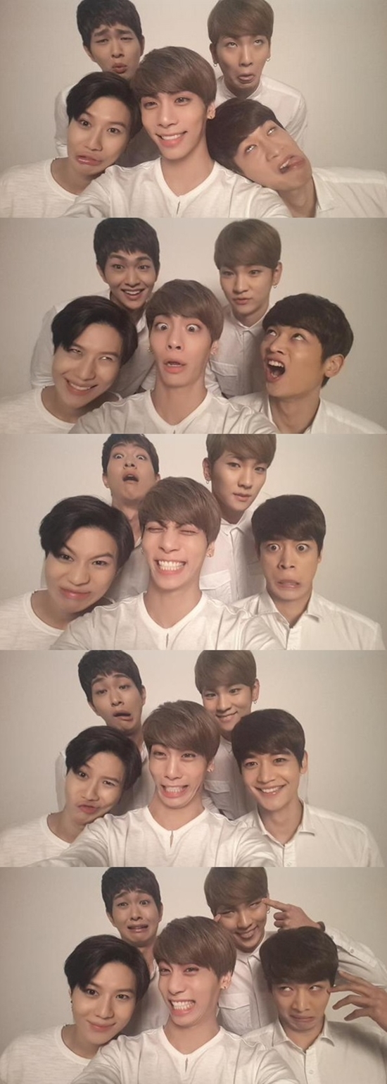 사진 속 종현은 멤버들과 함께하고 있는 모습으로 한 명씩 돌아가며 외모 몰아주기 셀카를 찍고 있다. 멤버들의 화기애애한 모습이 눈길을 사로잡는다.