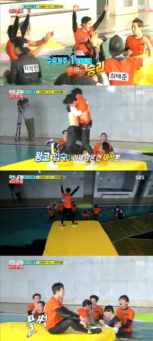 이날 꽃미남 후배팀은 첫 미션인 릴레이 부표 서바이벌에서 선배들을 만나 고전했다.