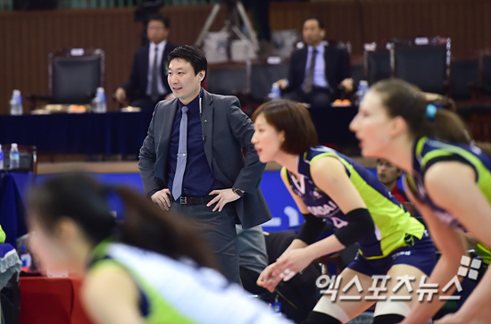 현대건설 양철호 감독이 선수들의 플레이를 지켜보고 있다.