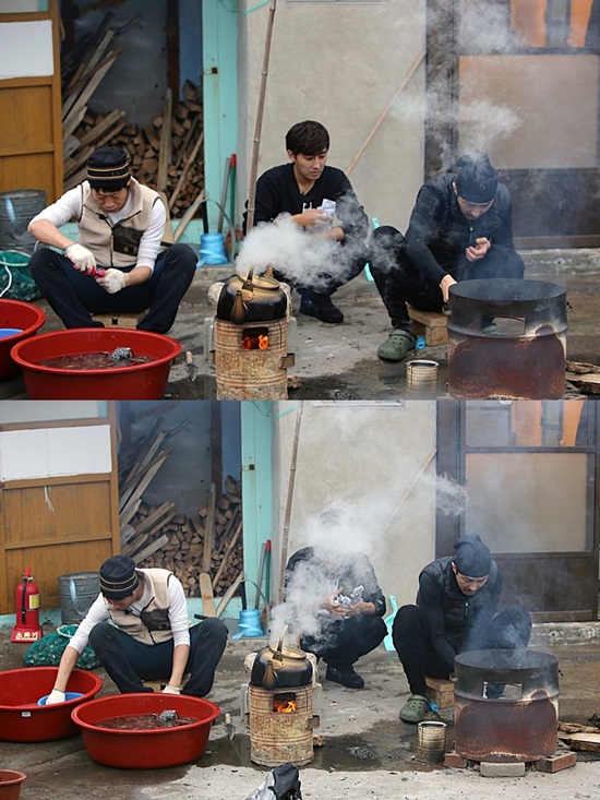 이 사진에서 손호준은 배우 차승원, 유해진과 장작 앞에서 열심히 음식을 준비하고 있다. 그러나 바람에 날린 연기가 손호준의 얼굴을 가리며 애잔한 분위기를 연출했다.