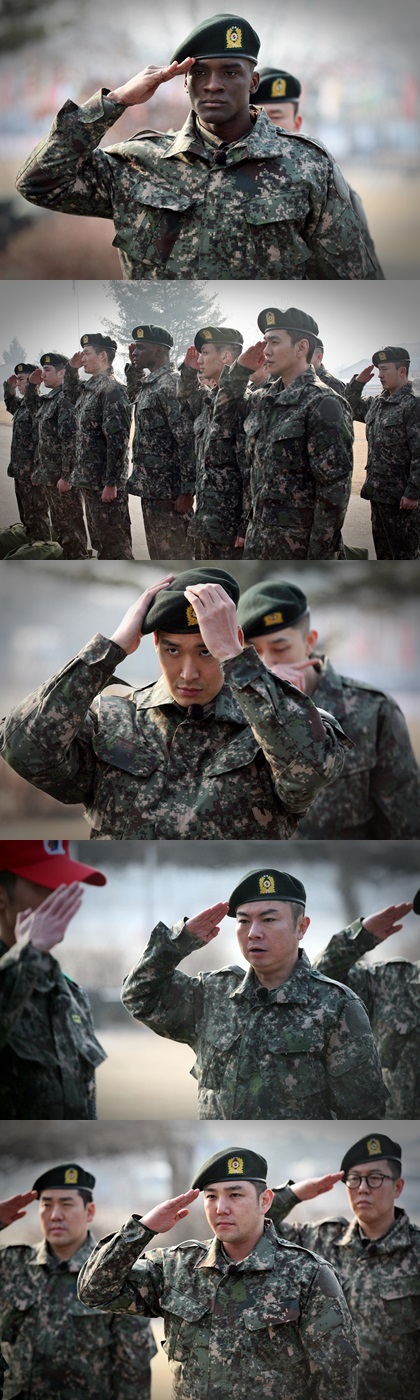 전날 부대 앞에서 머리를 깎은 임원희는 하루만에 늙어버린(?) 모습으로 거수경례를 했고, 배우 정겨운은 베레모를 고쳐 쓰며 각오를 다졌다.