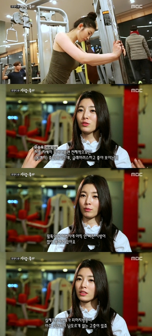 또 유승옥은 "(내 몸매가) 겉으로 보면 좋아 보이지만 팔뚝이나 허벅지처럼 안 보이는 곳에 피하지방층이 너무 두껍다. 그런 고충이 있다"고 털어놓아 눈길을 끌었다.