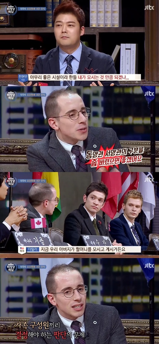 [엑스포츠뉴스=나금주 기자] '비정상회담' 타일러가 요양원의 인식에 대한 생각을 밝혔다.