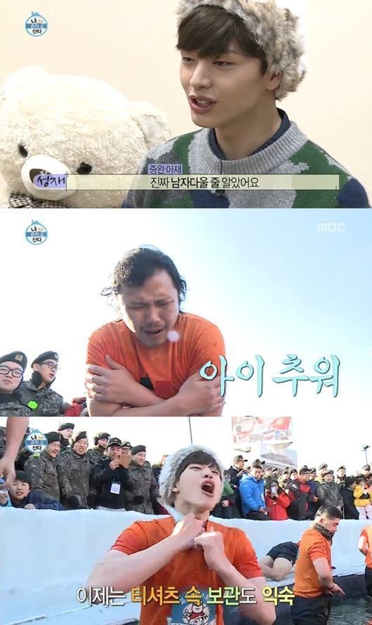 반면 육중완은 찬물을 견디지 못하고 바로 포기해 웃음을 자아냈다. 육성재는 육중완이 제대로 하지 못하자 "겉모습과 실제가 다르다"면서 웃음을 터뜨렸다.