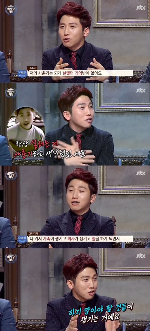 [엑스포츠뉴스=나금주 기자] '비정상회담' 유세윤이 자신의 사춘기에 대해 언급했다.