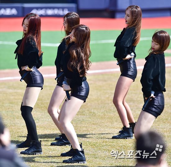 걸그룹 EXID가 그라운드에서 축하공연을 펼치고 있다.