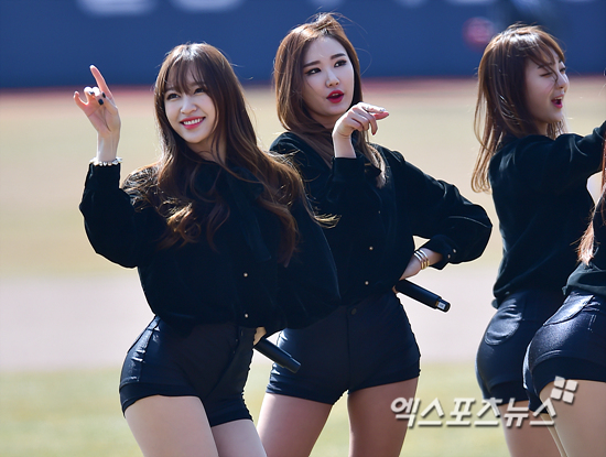 걸그룹 EXID가 그라운드에서 축하공연을 펼치고 있다.