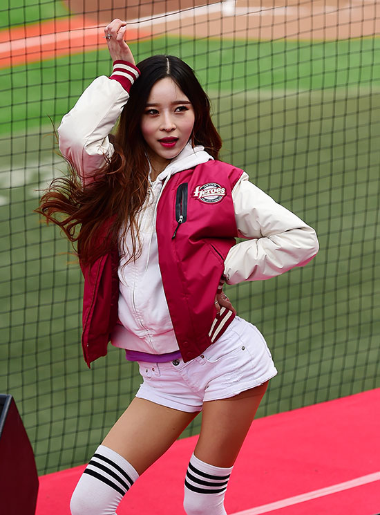 [엑스포츠뉴스=김한준 기자] 15일 오후 서울 목동야구장에서 열린 '2015 타이어뱅크 KBO리그' 롯데 자이언츠와 넥센 히어로즈와의 시범경기, 넥센 치어리더가 멋진 공연을 하고 있다.