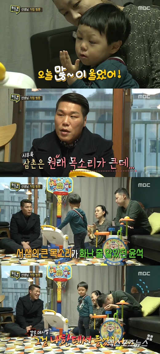 이날 서장훈은 윤석의 집을 방문했다. 윤석 어머니는 "윤석이 오늘 많이 울었지 않냐. 아빠가 화났을 때 '안윤석' 그렇게 (소리를 크게) 한다"라고 설명했다.
