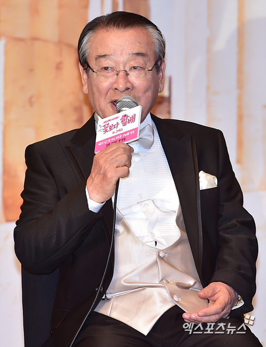 [엑스포츠뉴스=권혁재 기자] 24일 오후 서울 영등포구 여의도동 63 컨벤션센터에서 진행된 tvN '꽃보다 할배-그리스 편' 제작발표회에 참석한 이순재가 질의응답 시간을 갖고 있다.