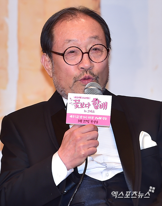[엑스포츠뉴스=권혁재 기자] 24일 오후 서울 영등포구 여의도동 63 컨벤션센터에서 진행된 tvN '꽃보다 할배-그리스 편' 제작발표회에 참석한 신구가 질의응답 시간을 갖고 있다.