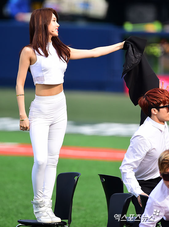 [엑스포츠뉴스=김한준 기자] 28일 오후 서울 목동야구장에서 열린 '2015 타이어뱅크 KBO리그' 한화 이글스와 넥센 히어로즈와의 경기, 클리닝 타임때 피에스타 린지가 멋진 공연을 선보이고 있다.