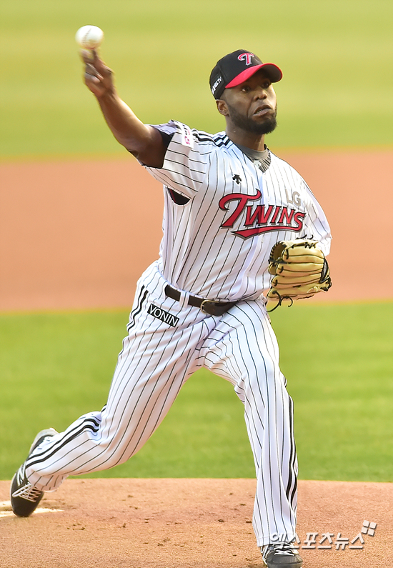 [엑스포츠뉴스=권혁재 기자] 3일 오후 서울 송파구 잠실야구장에서 열린 '2015 타이어뱅크 KBO리그' 삼성 라이온즈와 LG 트윈스의 경기에서 LG 선발투수 헨리 소사가 힘차게 공을 던지고 있다.