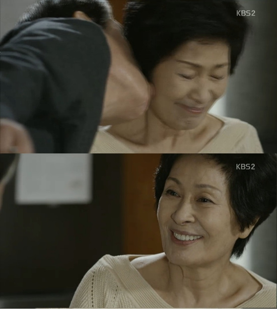 9일 방송된 KBS 2TV 수목드라마 '착하지 않은 여자들' 14회에서는 강순옥(김혜자 분)이 김철희(이순재)의 볼뽀뽀에 함박웃음을 짓는 모습이 그려졌다.