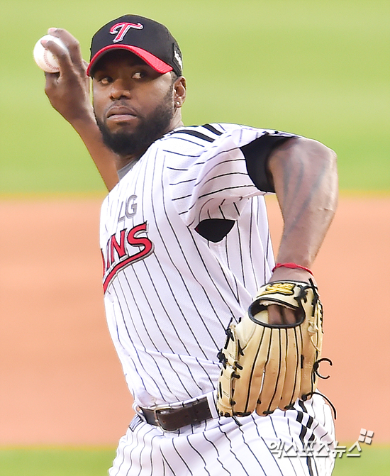 [엑스포츠뉴스=권혁재 기자] 15일 오후 서울 송파구 잠실야구장에서 열린 '2015 타이어뱅크 KBO리그' KIIA 타이거즈와 LG 트윈스의 경기, LG 선발투수 헨리 소사가 힘차게 공을 던지고 있다.