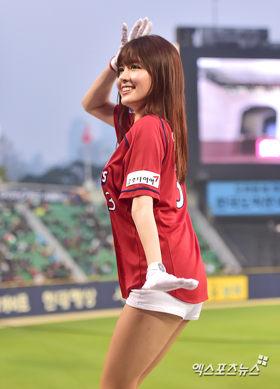 [엑스포츠뉴스=권혁재 기자] 15일 오후 서울 송파구 잠실야구장에서 열린 '2015 타이어뱅크 KBO리그' KIIA 타이거즈와 LG 트윈스의 경기, KIA 치어리더 엄지가 화려한 안무를 선보이고 있다.