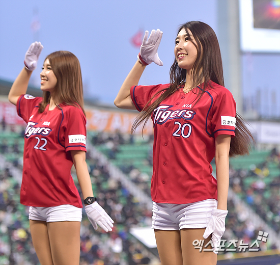 [엑스포츠뉴스=권혁재 기자] 15일 오후 서울 송파구 잠실야구장에서 열린 '2015 타이어뱅크 KBO리그' KIIA 타이거즈와 LG 트윈스의 경기, KIA 치어리더들이 화려한 안무를 선보이고 있다.