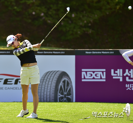 [엑스포츠뉴스=김해, 권혁재 기자] 25일 오전 경남 김해 가야 컨트리클럽(파72ㅣ6,649야드)에서 열린 '넥센 세인트나인 마스터즈 2015(총상금 5억 원, 우승상금 1억 원)' 2라운드 경기, 정재은(26, 비씨카드)이 17번홀 티샷을 하고 있다.
