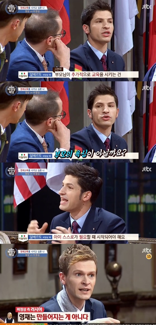 [엑스포츠뉴스=나금주 기자] '비정상회담' 알베르토가 영재교육은 아이가 필요할 때 시작되어야 한다고 밝혔다.